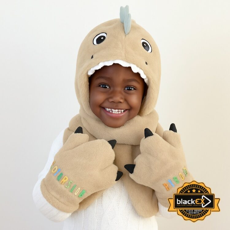 Winter Warm Cap Cute Dinosaur Plush Scarf Three-piece...