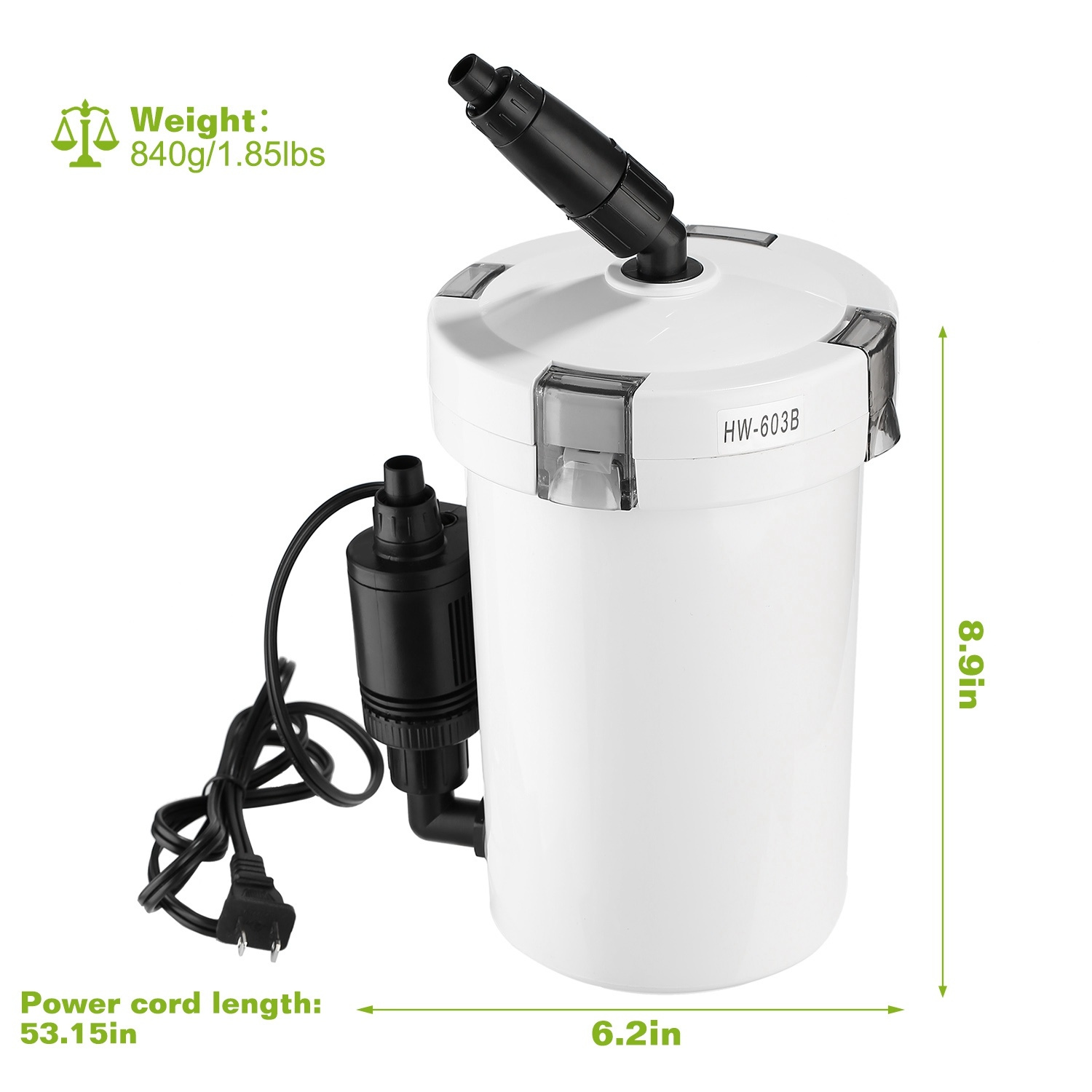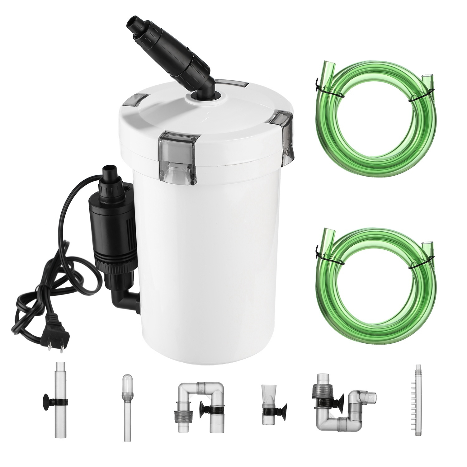 *Complete External Canister Filter Kit*:Including 1pcs sealing-well filter barrel with a powerful pump; 2pcs hoses for inlet and outlet; 1pcs inlet adjuster to conveniently adjust the flow rate; 1set inlet components and 1set outlet components.